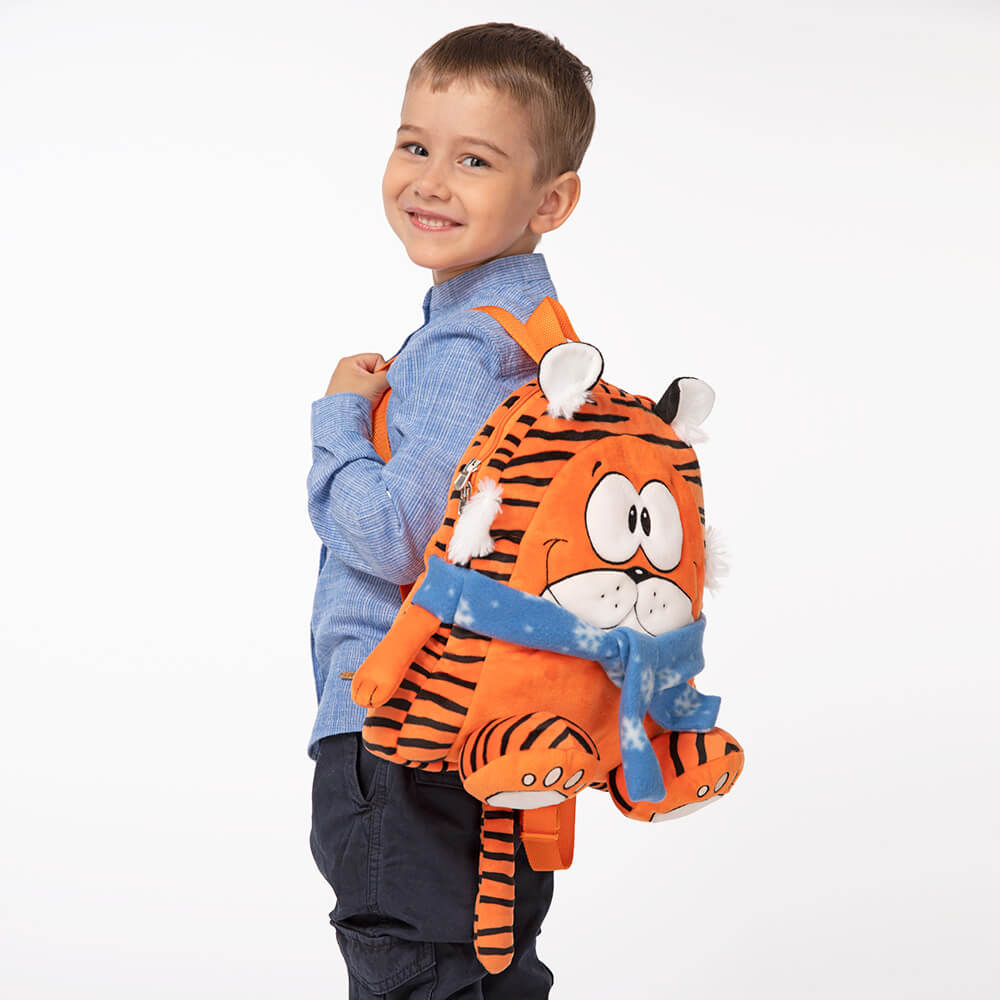 Яркий оранжевый рюкзачок в виде тигренка хочется везде брать с собой! С ним любая прогулка превращается в веселое приключение, а на Новый год ребенок будет рад найти в рюкзачке сладкий подарок от Деда Мороза!